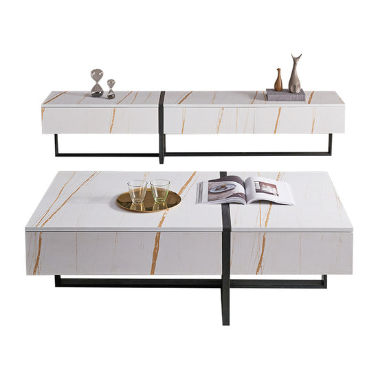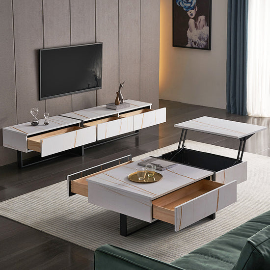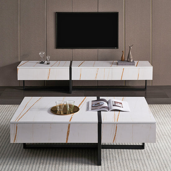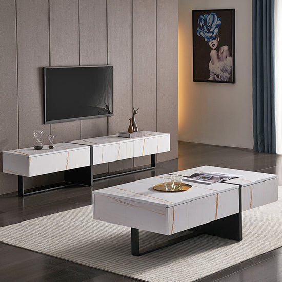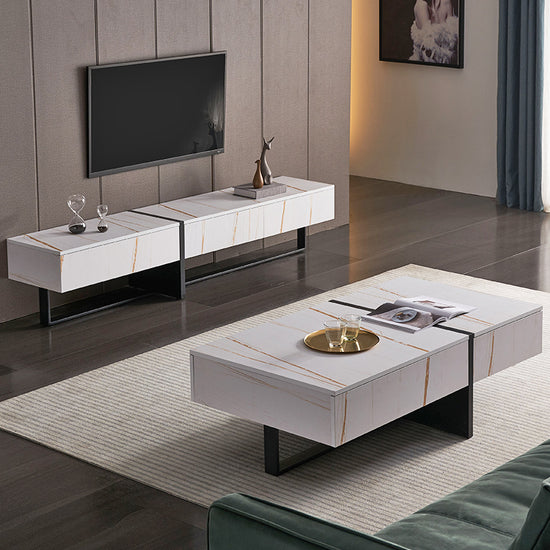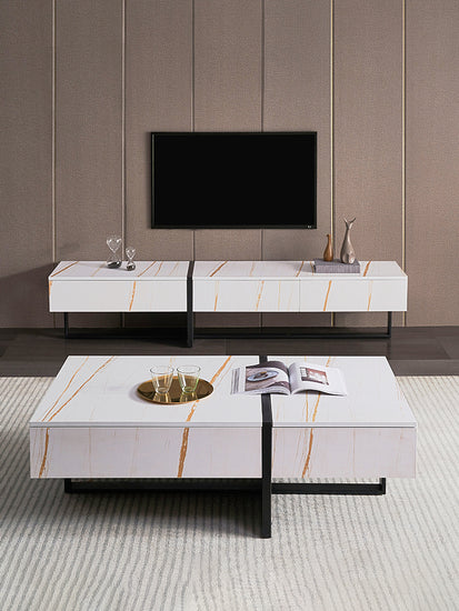 Modern wood Coffee Table and Tv Stand, Steel Legs.